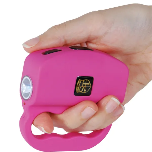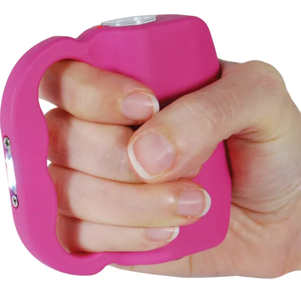 Fits comfortably and seamlessly in the hand, the Talon delivers super powered stun protection. The Talon's trigger is hidden by the palm of the hand, so just a quick squeeze of the stun gun fires 75 Million volts through an attacker when needed. The sound of the Talon's stun may defuse a dangerous situation before it even begins! It has a blinding 120 Lumens LED flashlight and a rubberized coating for a superb grip.