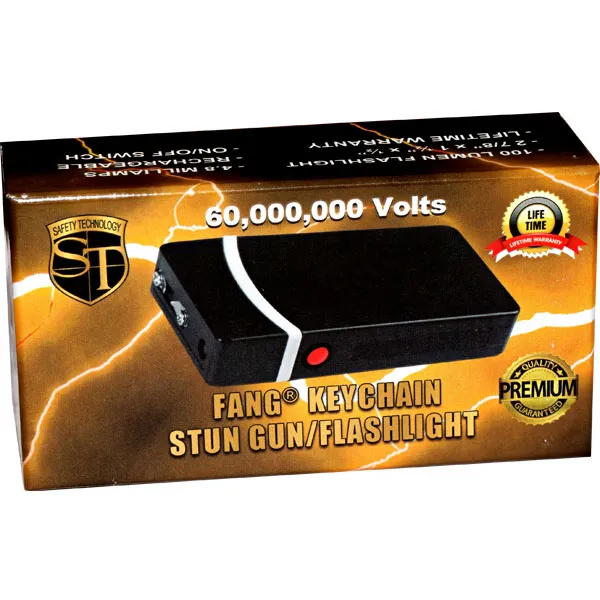 Fang Keychain Stun Gun and Flashlight with Battery Meter Black