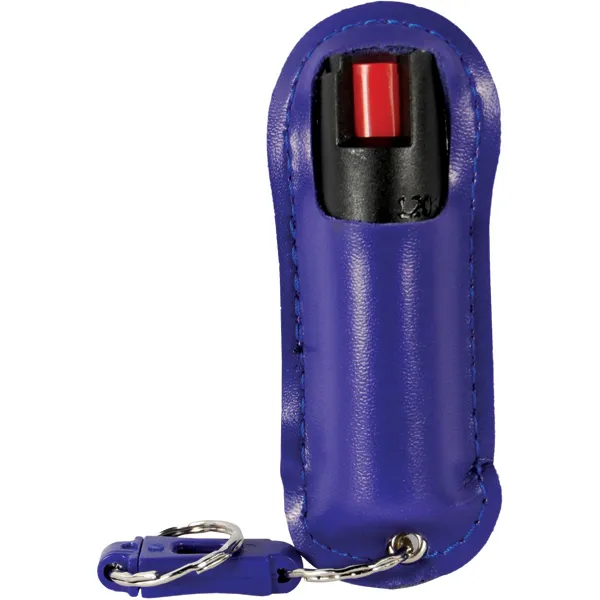 WildFire 1.4% MC 1/2 oz Halo Holster and quick release keychain blue. The WILDFIRE® PEPPER SPRAY is hot, hot, hot. The Major Capsaicinoids are the true heat measure, WildFire has the hottest on the market at 1.4% Major Capsaicinoids. In addition to causing an attacker pain, The WildFire 10% oleoresin capsicum formula swells the mucous membranes, which makes breathing difficult, and swells the veins in the eyes, causing the eyes to close. It's made from 2,000,000 SHU's of raw pepper and these effects can last up to 45 minutes and cause no permanent damage. Has a UV identifying dye to help aid in the identification of an attacker. Wildfire 1/2 oz. Pepper Spray has a range of 6-8 feet and comes with a leatherette halo holster. Each unit provides 6-10 one-second bursts and comes with a quick key release keychain, and safety lock. 4 ¼" x 1 ⅝"