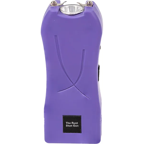 The rechargeable RUNT 80,000,000 volt stun guns now have an LED flashlight and wrist strap disable pin. It’s easily concealable, and virtually undetectable in the hand of a woman or a man.