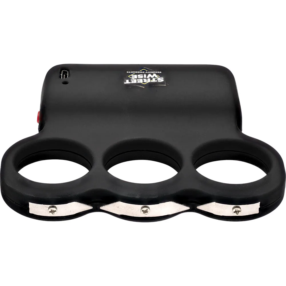 Designed to Defend: Your tight grip around the unit prevents it from being knocked out of your hand. The ease of use, concealability, and strong electric current makes it one of the best new stun gun models on the market today! Knuckle Protection: The sting rings on the Triple Sting cover three fingers, providing extra protection in case it's necessary to punch an attacker. Squeeze-N-Stun Technology: