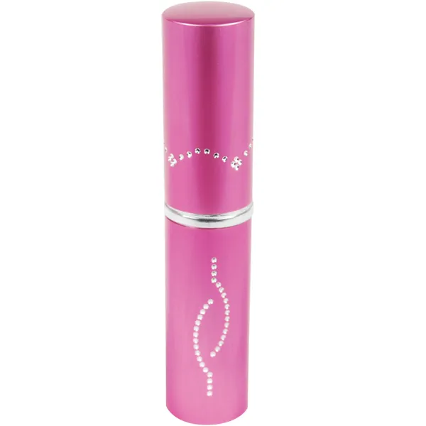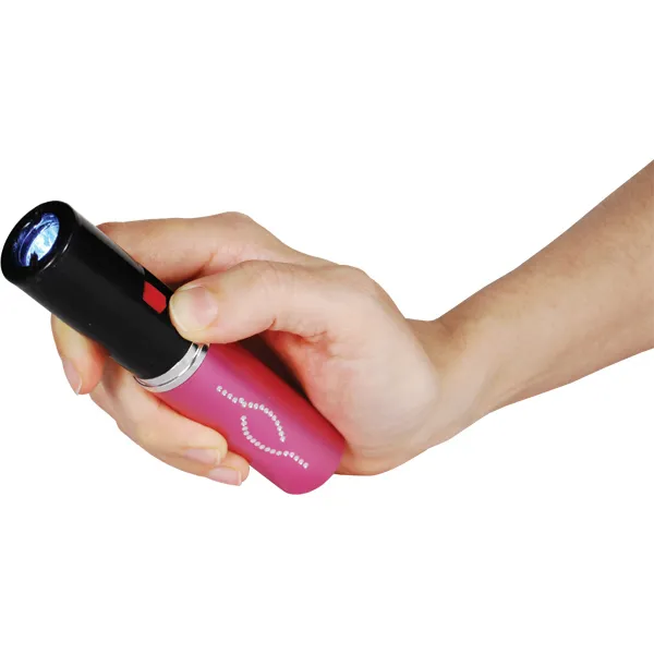 The 25,000,000 volt lipstick stun gun with flashlight is secretly disguised in a decorative tube of lipstick and has 4.2 milliamps depending on the freshness of the batteries.