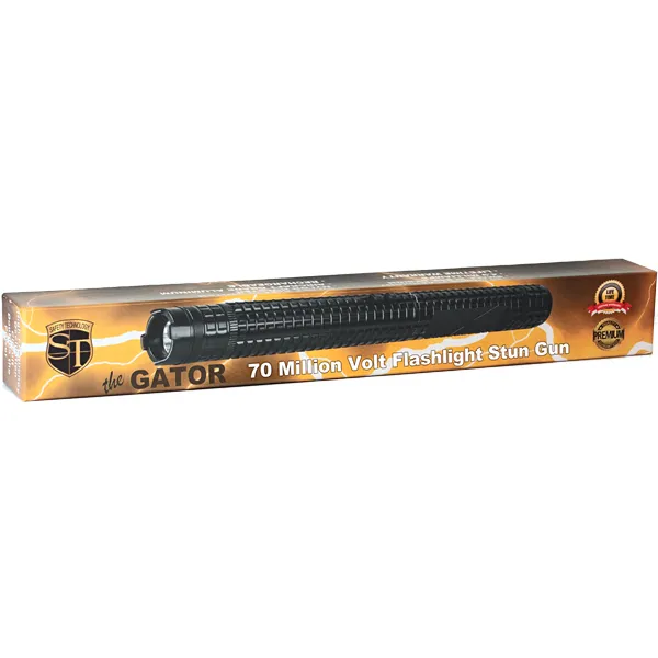 The Safety Technology 70 million Volts Gator stun gun Baton serves as a stun gun, flashlight, and a striking personal protection weapon all in a single unit. The Gator has a bright 180 lumen flashlight with 3 light modes. When blinding an attacker isn’t enough, the Gator dishes out a whopping 70 million volts shock.