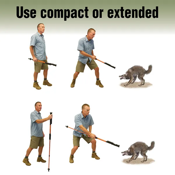The ZAP™ Hike 'n Strike™ is a multi-talented hiking staff that features a 950,000-volt self defense stun gun device with spiked electrodes so you'll never forget to bring safety accessories on your adventure.