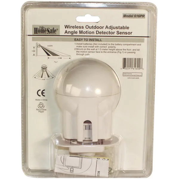 The OUTDOOR HOMESAFE WIRELESS HOME SECURITY MOTION SENSOR can detect motion from up to 10 meters away and has an adjustable 150 degree motion detection angle.
