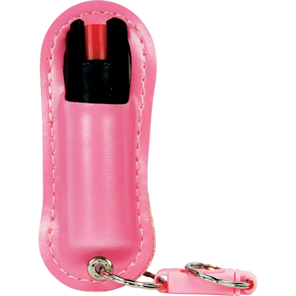 WildFire 1.4% MC 1/2 oz Halo Holster and quick release keychain pink. The WILDFIRE® PEPPER SPRAY is hot, hot, hot. The Major Capsaicinoids are the true heat measure, WildFire has the hottest on the market at 1.4% Major Capsaicinoids. In addition to causing an attacker pain, The WildFire 10% oleoresin capsicum formula swells the mucous membranes, which makes breathing difficult, and swells the veins in the eyes, causing the eyes to close. It's made from 2,000,000 SHU's of raw pepper and these effects can last up to 45 minutes and cause no permanent damage. Has a UV identifying dye to help aid in the identification of an attacker. Wildfire 1/2 oz. Pepper Spray has a range of 6-8 feet and comes with a leatherette halo holster. Each unit provides 6-10 one-second bursts and comes with a quick key release keychain, and safety lock. 4 ¼" x 1 ⅝"
