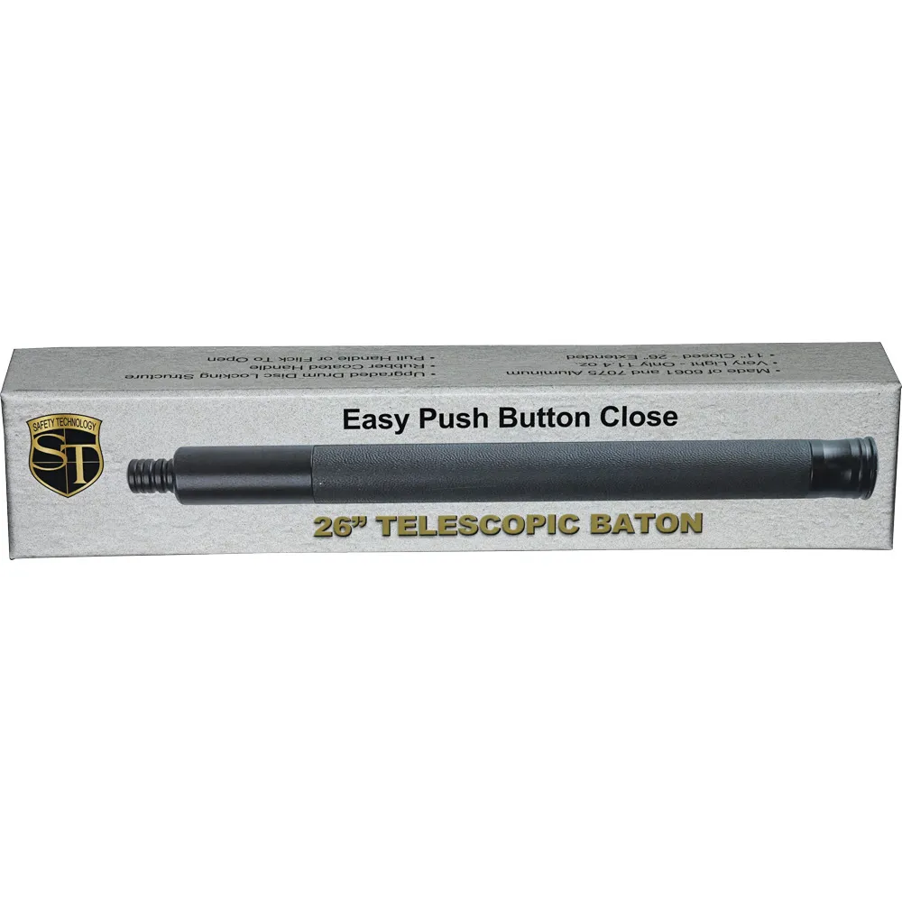 The Safety Technology® 26-inch Push Button Expandable Aluminum Baton opens with a flick of the wrist automatically securing itself.