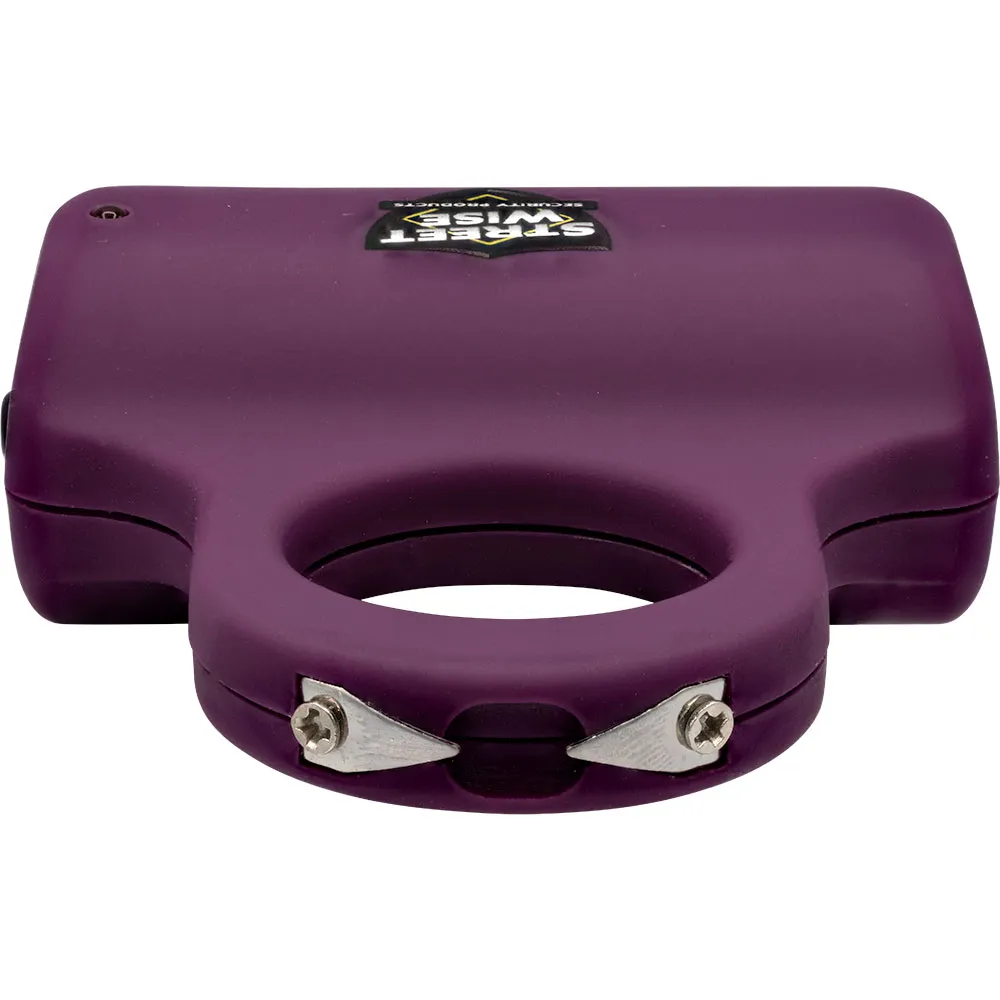 Streetwise Security Products introduces their newest design in personal protection, the Sting Ring 18,000,000* Stun Gun. This revolutionary patented model separates itself from all other stun guns on the market today and has become one of our best sellers and a favorite among women. The base of the unit can be concealed in the palm of your hand exposing only the top of the Sting Ring. The rounded base feels natural in your hand, and when gripped firmly it’s nearly impossible for an attacker to take it from you. The Squeeze-N-Stun Technology could save your life by saving you valuable seconds when defending yourself in a panic situation. Rather than having to fumble around looking for the right buttons to push you simply turn off the safety and tighten your grip to activate the unit and stun your attacker!